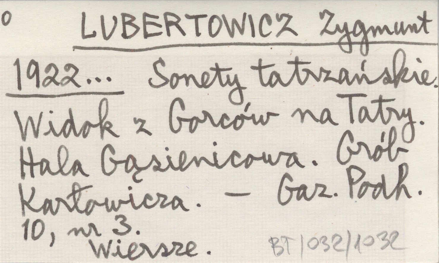 LUBERTOWICZ Zygmunt 1922... Sonety tatrzańskie. Widok z Gorców na Tatry. Hala Gąsienicowa. Grób Karłowicza.