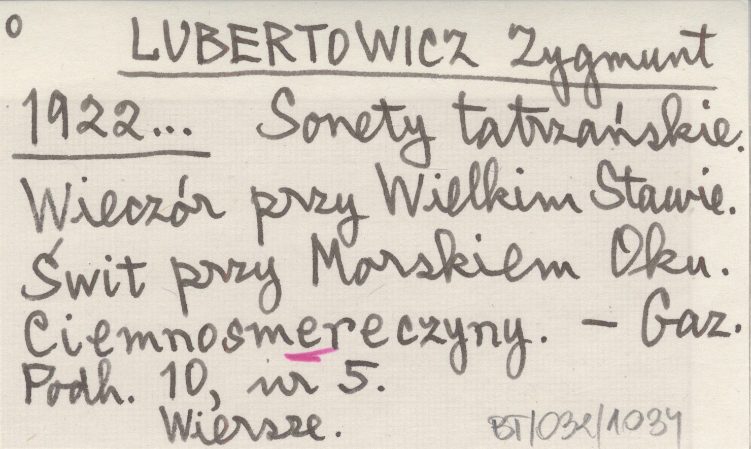 LUBERTOWICZ Zygmunt 1922... Sonety tatrzańskie. Wieczór przy Wielkim Stawie. Świt przy Morskiem Oku. Ciemnosmereczyny.