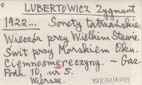 LUBERTOWICZ Zygmunt 1922... Sonety tatrzańskie. Wieczór przy Wielkim Stawie. Świt przy Morskiem Oku. Ciemnosmereczyny.