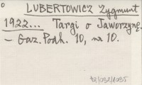 LUBERTOWICZ Zygmunt 1922... Targi o Jaworzynę.