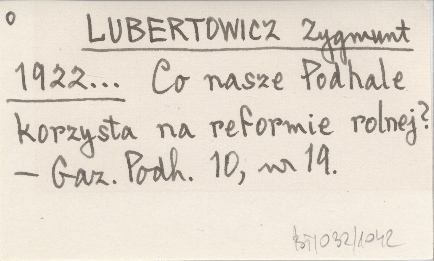 LUBERTOWICZ Zygmunt 1922... Co nasze Podhale korzysta na reformie rolnej?