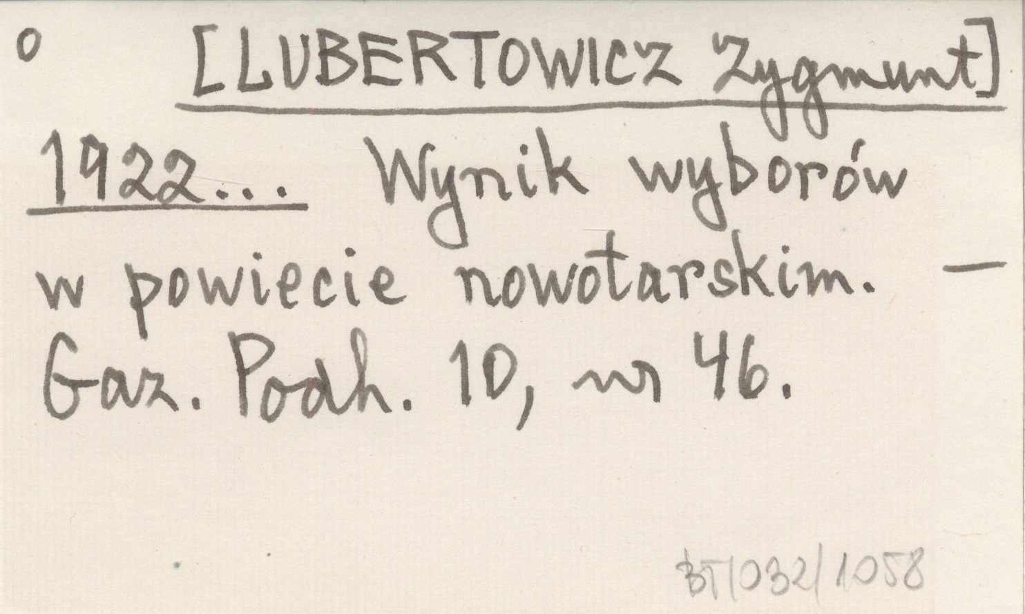 [LUBERTOWICZ Zygmunt] 1922... Wynik wyborów w powiecie nowotarskim.