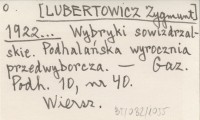 [LUBERTOWICZ Zygmunt] 1922... Wynik wyborów w powiecie nowotarskim.