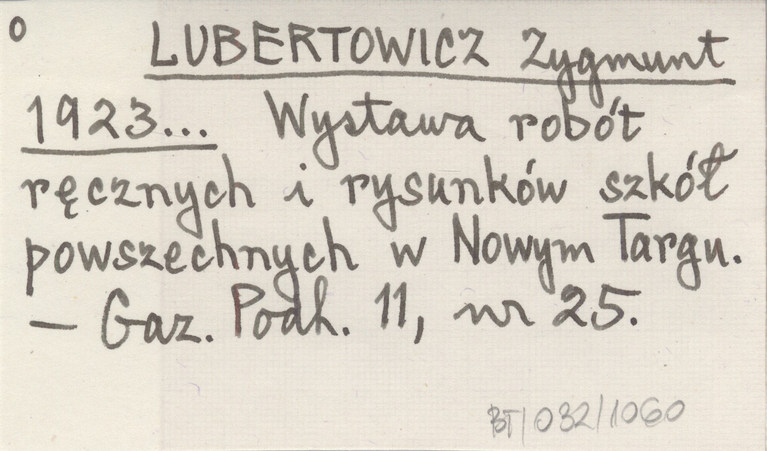 LUBERTOWICZ Zygmunt 1923... Wystawa robót ręcznych i rysunków szkół powszechnych w Nowym Targu.