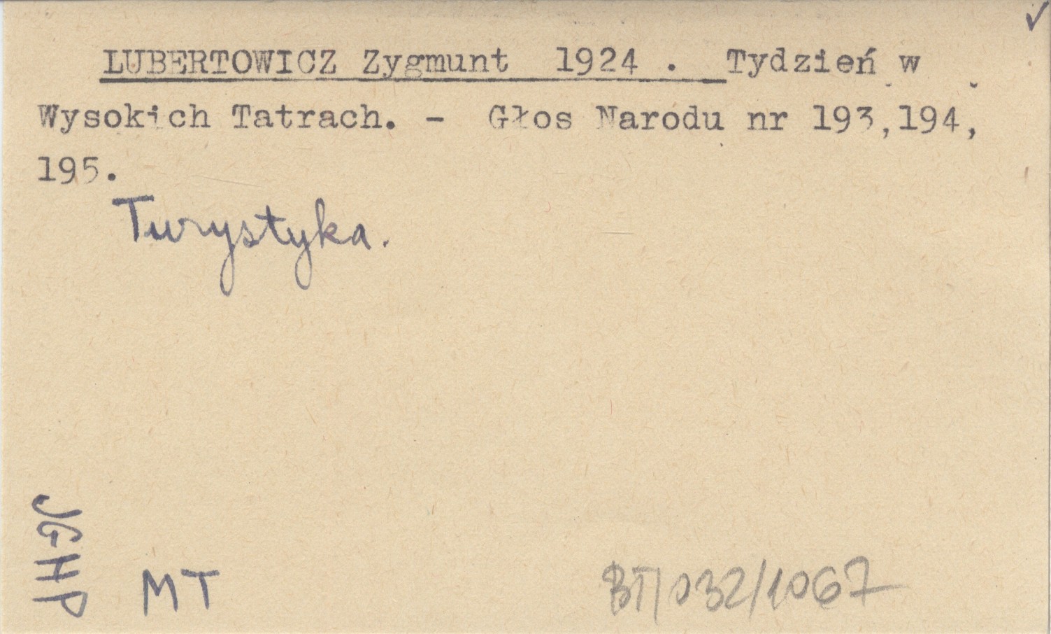 LUBERTOWICZ Zygmunt 1924 Tydzień w Wysokich Tatrach.
