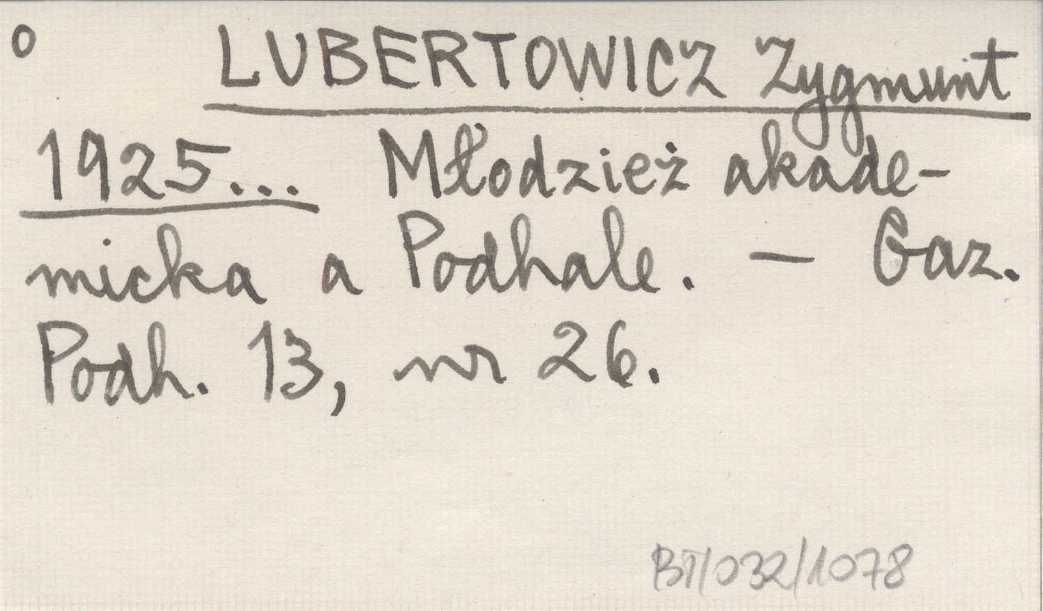 LUBERTOWICZ Zygmunt 1925... Młodzież akademicka a Podhale.
