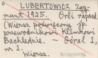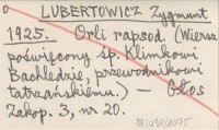 LUBERTOWICZ Zygmunt 1925 Orli rapsod. (Wiersz poświęcony śp. przewodnikowi Klimkowi Bachledzie.).