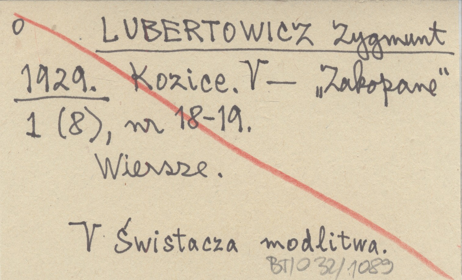 LUBERTOWICZ Zygmunt 1929 Kozice. Świstacza modlitwa.