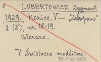 LUBERTOWICZ Zygmunt 1929 Kozice. Świstacza modlitwa.