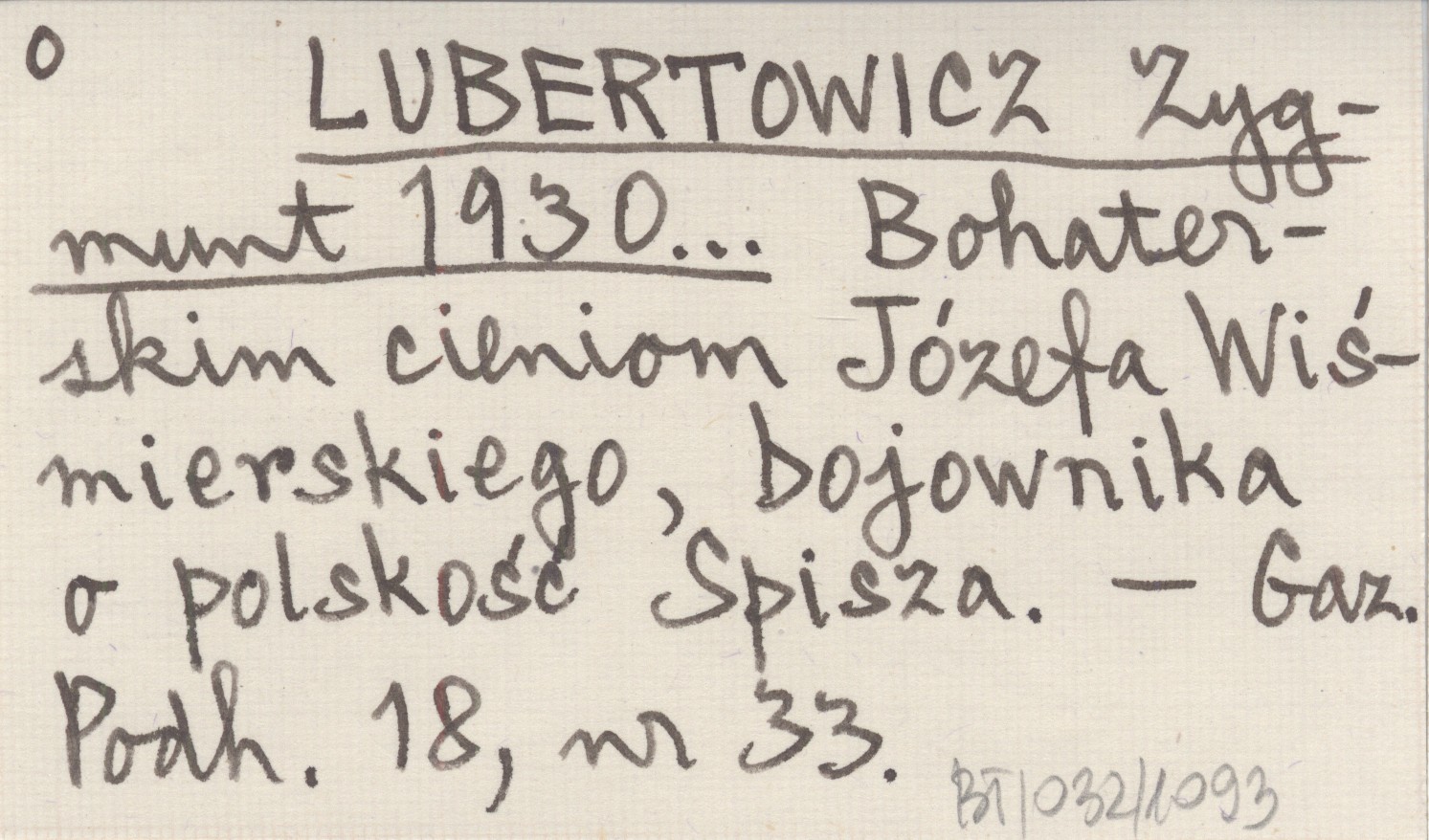 LUBERTOWICZ Zygmunt 1930... Bohaterskim cieniom Józefa Wiśmierskiego, bojownika o polskość Spisza.