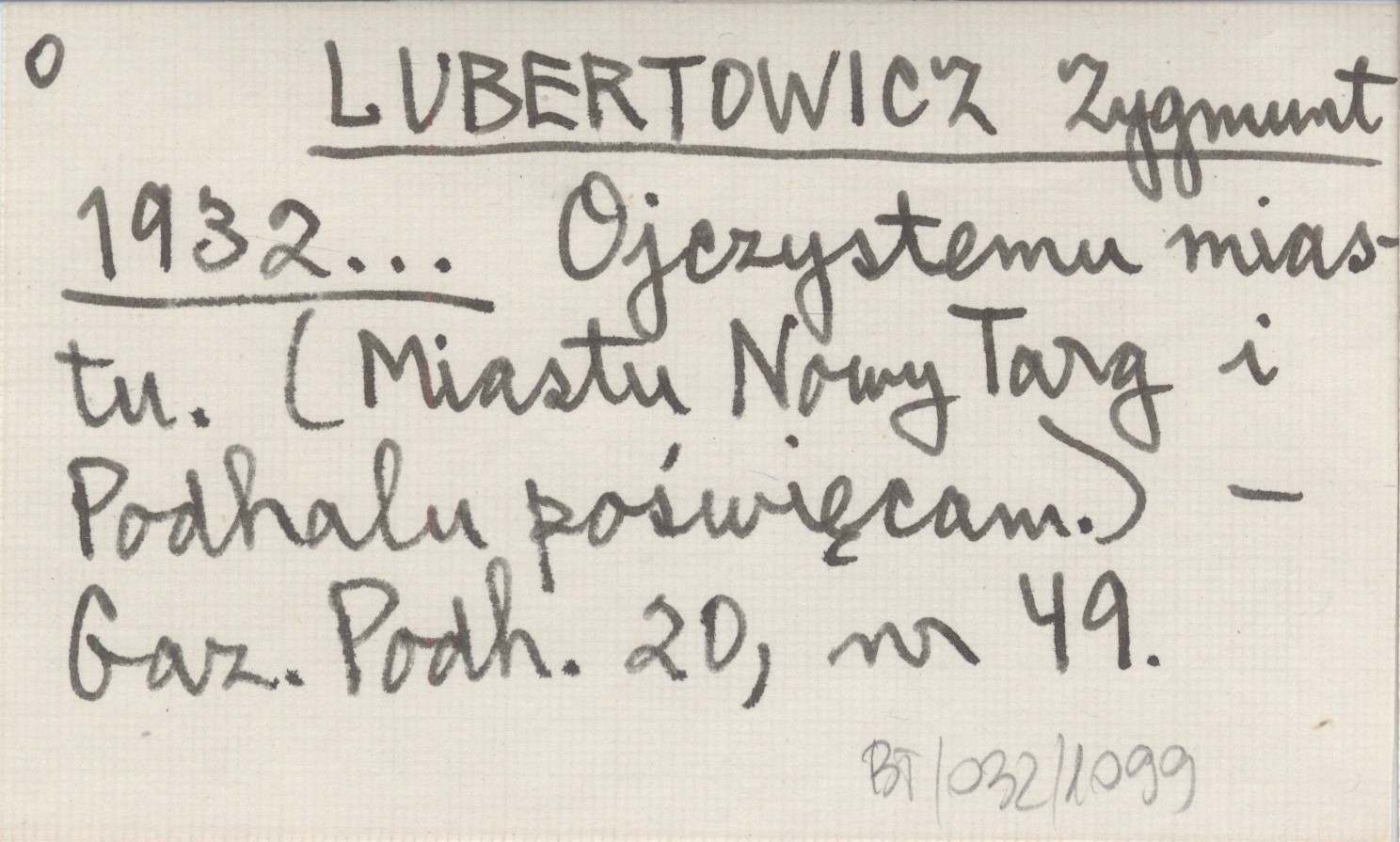 LUBERTOWICZ Zygmunt 1932... Ojczystemu miastu. (Miastu Nowy Targ i Podhalu poświęcam.).