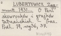 LUBERTOWICZ Zygmunt 1931... O Pani skowronków i grajków tatrzańskich.