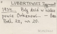 LUBERTOWICZ Zygmunt 1934... Bóg dziś w niebie powie Orkanowi...