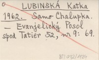 LUBINSKÁ Katka 1962 Samo Chalupka.