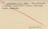 LUBOMIRSKI J. T. 1868 Trzy rozdziały z historii skarbowości w Polsce 1507-1532.