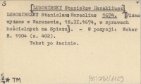 LUBOMIRSKY Stanislaus Heraclius [LUBOMIRSKI Stanisław Herakliusz] 1674 a [Pismo wydane w Łańcucie (Lanczhutii), 11 (14).III.1674, w sprawach kościelnych na Spiszu].