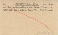 LIMPRICHT K. G. 1874 Novitäten aus der Laubmoosflora der Hohen Tatra.