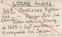LUCAE Andrej 1669 Orationes Rythmicae.
