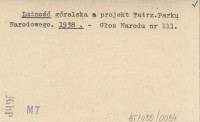 Ludność góralska a projekt Tatrz.Parku Narodowego. 1938