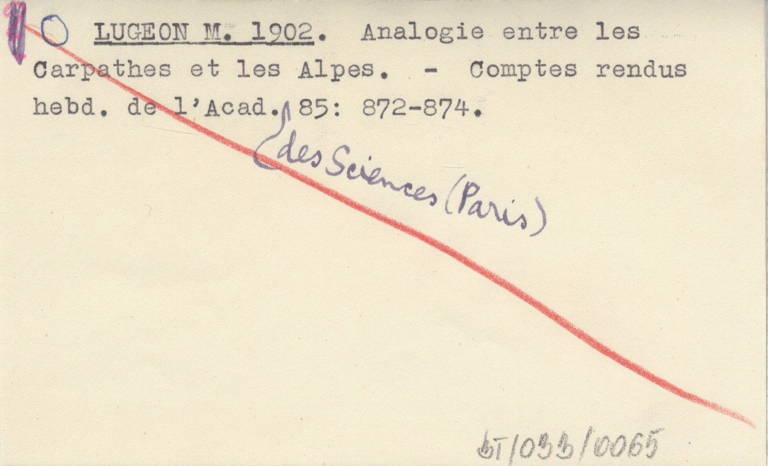 LUGEON M. 1902 Analogie entre les Carpathes et les Alpes.