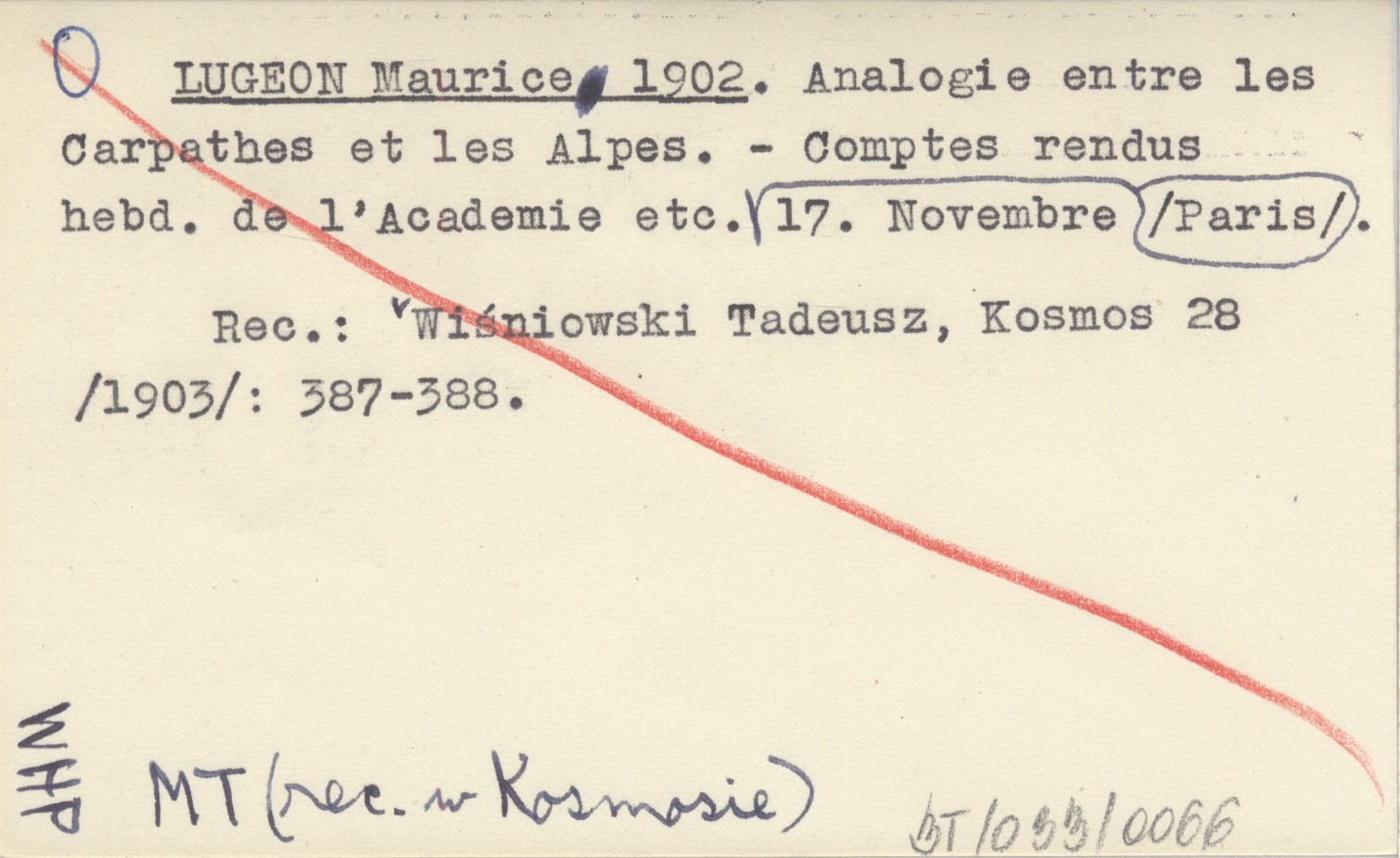 Comptes rendus hebd. de l'Academie etc. (Paris) , 17 XI. REC: WIŚNIOWSKI Tadeusz, Kosmos 28 (1903): 387-388