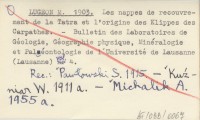 LUGEON M. 1903 Les nappes de recouvrement de la Tatra et l'origine des Klippes des Carpathes.