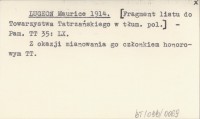 LUGEON Maurice 1914 [Fragment listu do Towarzystwa Tatrzańskiego w tłum. pol.].