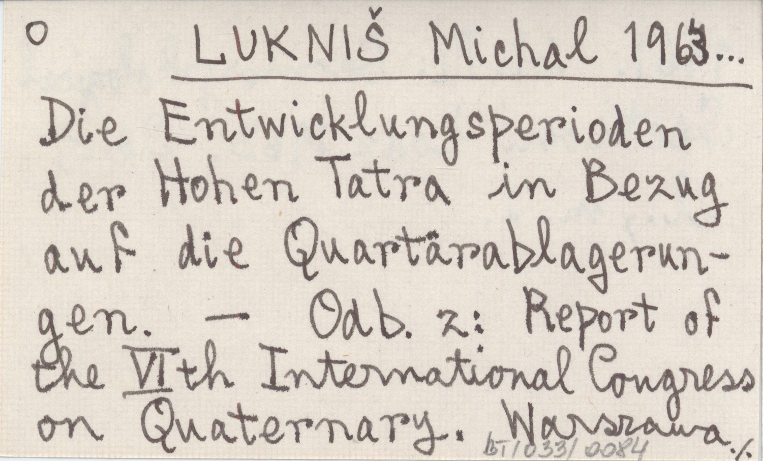 LUKNIŠ Michal 1963... Die Entwicklungsperioden der Hohen Tatra in Bezug auf die Quartärablagerungen.