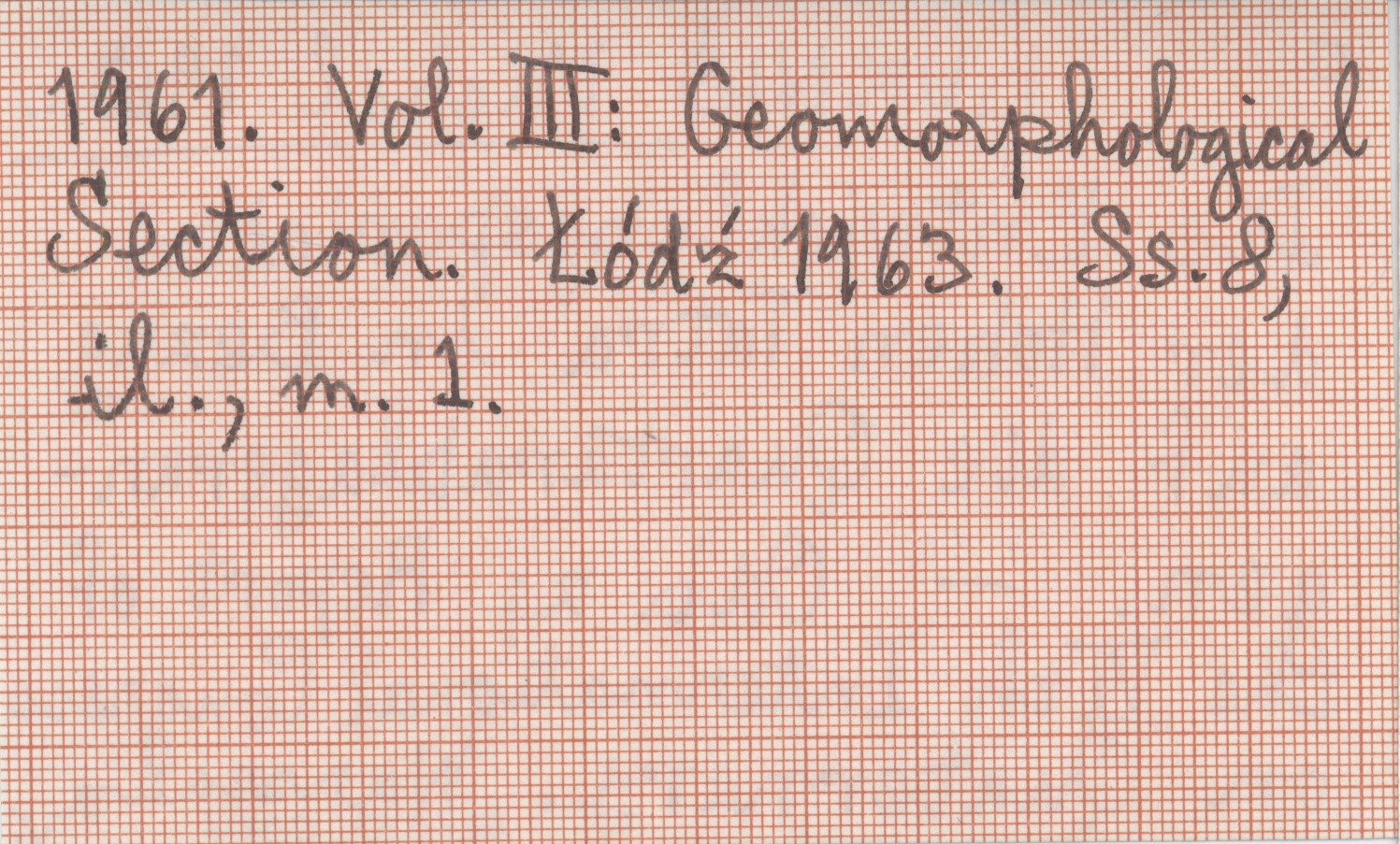 , Odb. z: Report of the VIth International Congress on Quaternary. Warszawa 1961. Vol. III: Geomorphological Section. Łódź 1963. 8 s., il., 1 m.