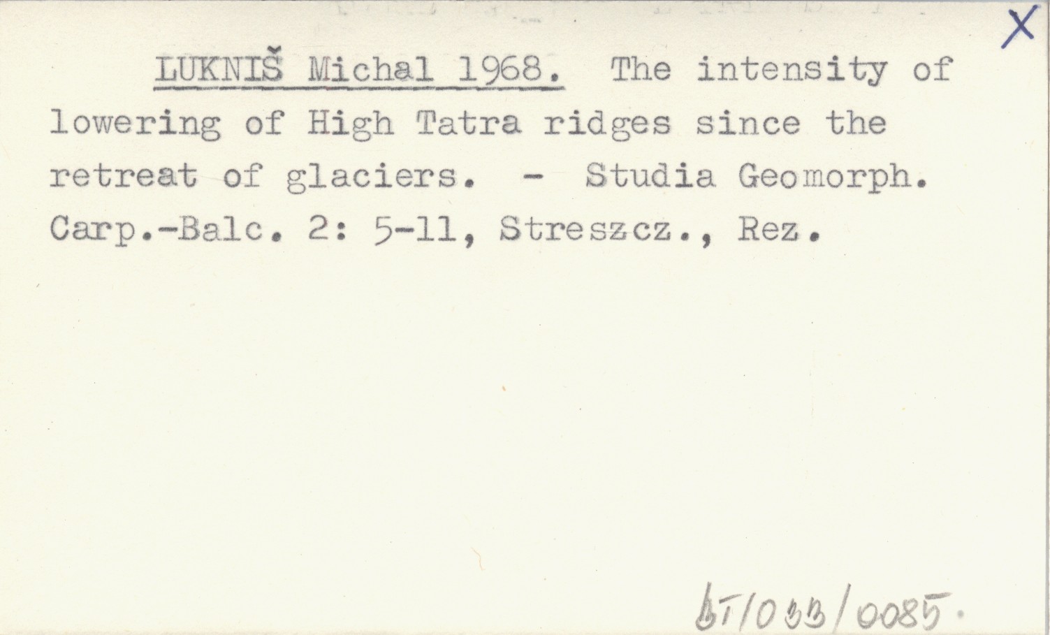 LUKNIŠ Michal 1968 The intensity of lowering of High Tatra ridges since the retreat of glaciers.