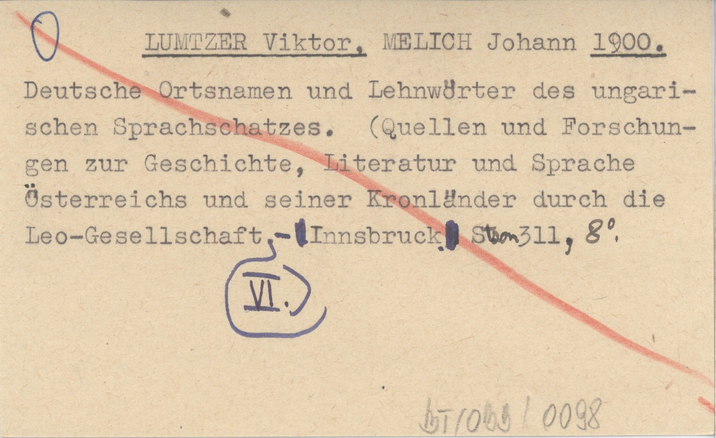 LUMTZER Viktor MELICH, Johann. ; 1900 Deutsche Ortsnamen und Lehnwörter des ungarischen Sprachschatzes. (Quellen und Forschungen zur Geschichte, Literatur und Sprache Österreichs und seiner Kronländer durch die Leo-Gesellschaft VI.).