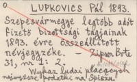 LUPKOVICS Pál 1893 Szepesvármegye legtöbb adót fizetö bizottsági tagjainak 1893. évre összeállitott névjegyzéke.