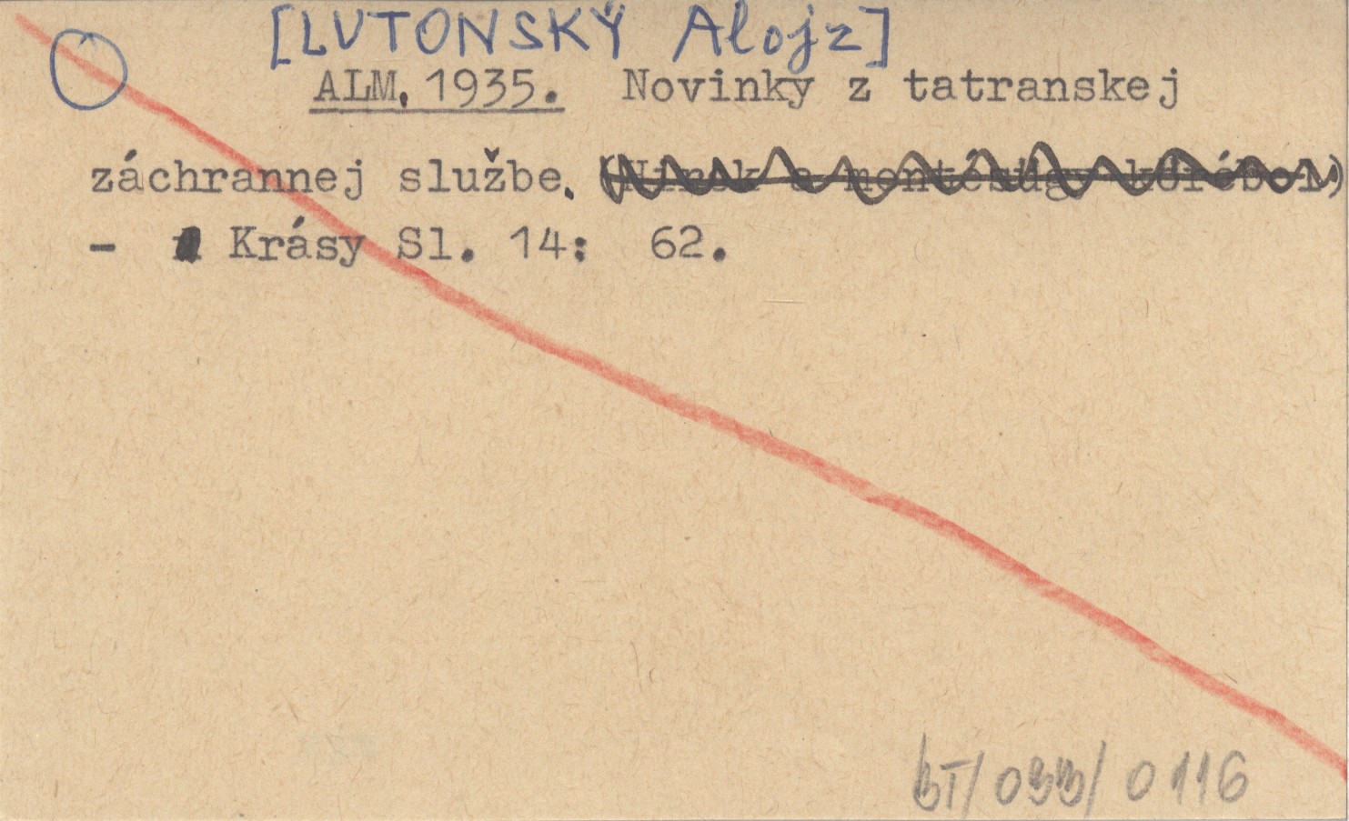 ALM. [LUTONSKÝ Alojz] 1935 Novinky z tatranskej záchrannej službe.