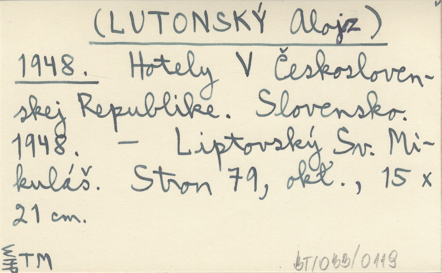 (LUTONSKÝ Alojz) 1948 Hotely V Československej Republike. Slovensko. 1948.