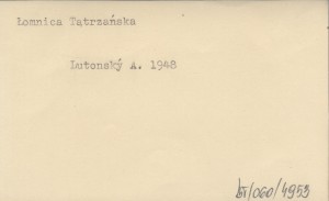 LUTONSKĘ Alojz 1948 Symbolickę cintorín vo Vysokęch Tatrach.