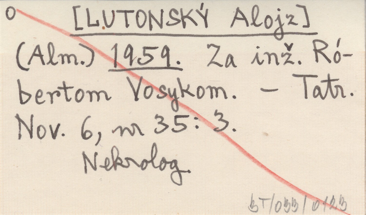 (Alm.) [LUTONSKÝ Alojz] 1959 Za inž. Róbertom Vosykom.