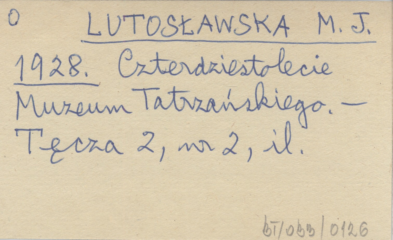 LUTOSŁAWSKA M. J. 1928 Czterdziestolecie Muzeum Tatrzańskiego.