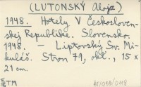 (LUTONSKĘ Alojz) 1948 Hotely V Èeskoslovenskej Republike. Slovensko. 1948.