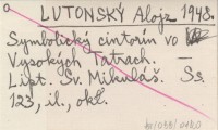 LUTONSKĘ Alojz 1948 Symbolickę cintorín vo Vysokęch Tatrach.