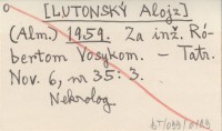 (Alm.) [LUTONSKĘ Alojz] 1959 Za inŸ. Róbertom Vosykom.