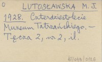 LUTOSŁAWSKA M. J. 1928 Czterdziestolecie Muzeum Tatrzańskiego.