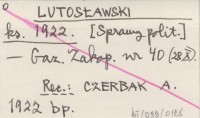 ks. LUTOSŁAWSKI 1922 [Sprawy polit.].
