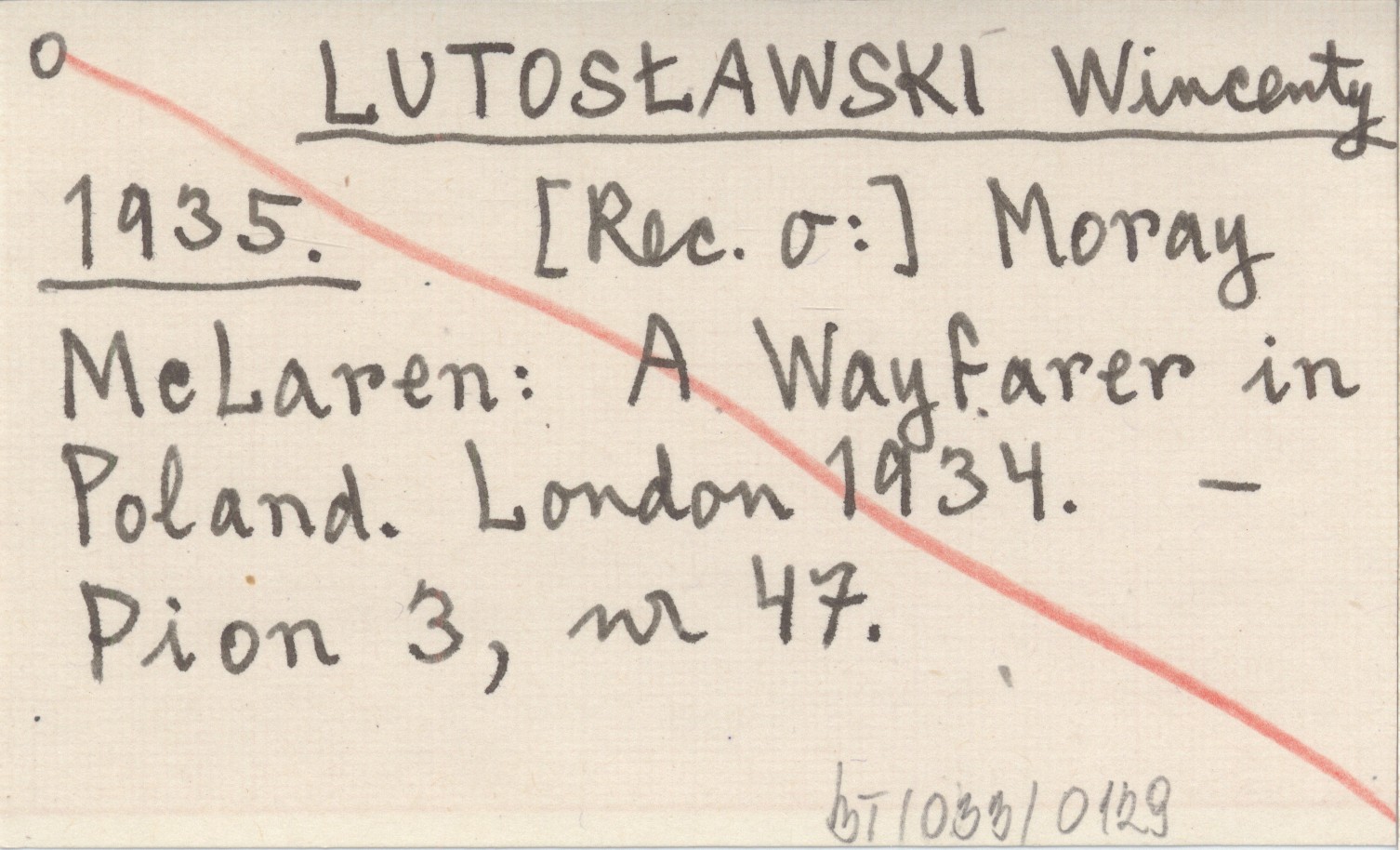 LUTOSŁAWSKI Wincenty 1935 Moray McLaren: A Wayfarer in Poland. London 1934.