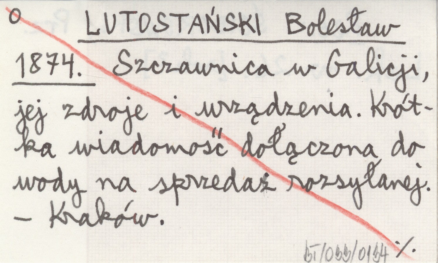 LUTOSTAŃSKI Bolesław 1874 Szczawnica w Galicji, jej zdroje i urządzenia. Krótka wiadomość dołączona do wody na sprzedaż rozsyłanej.