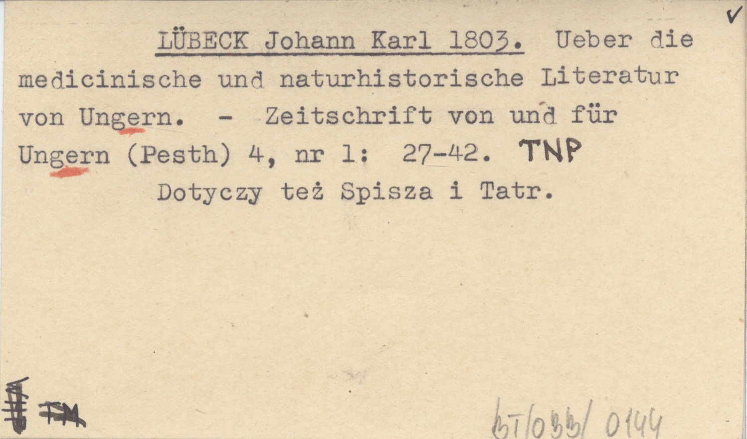 LÜBECK Johann Karl 1803 Ueber die medicinische und naturhistorische Literatur von Ungern.