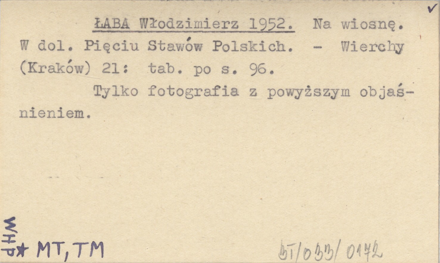 Wierchy (Kraków) , 21, 1 k. tabl. (po s. 96). Tylko fotografia z powyższym objaśnieniem.