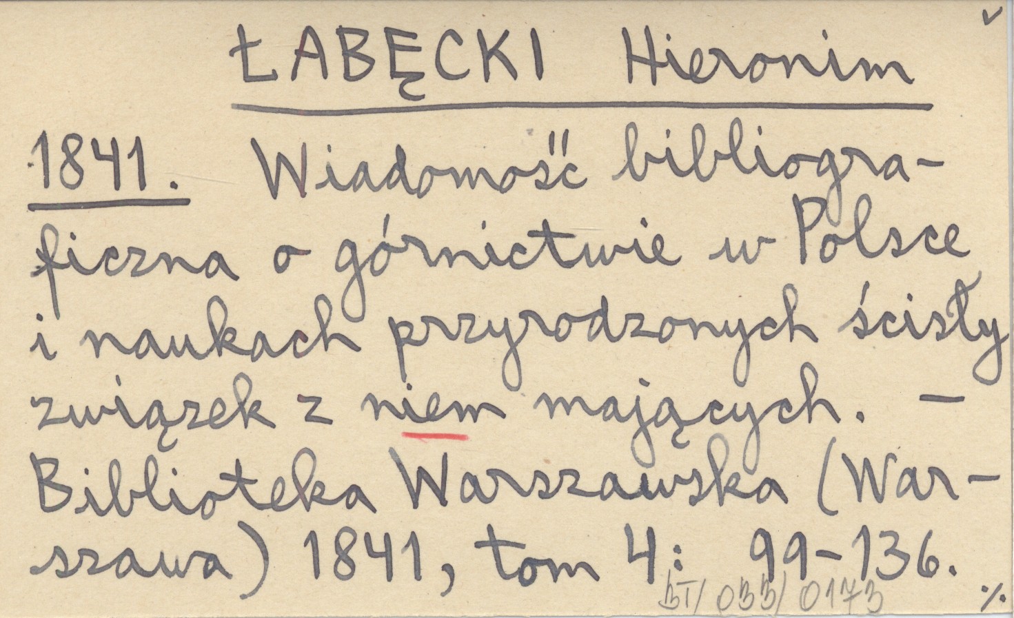 ŁABĘCKI Hieronim 1841 Wiadomość bibliograficzna o górnictwie w Polsce i naukach przyrodzonych ścisły związek z niem mających.