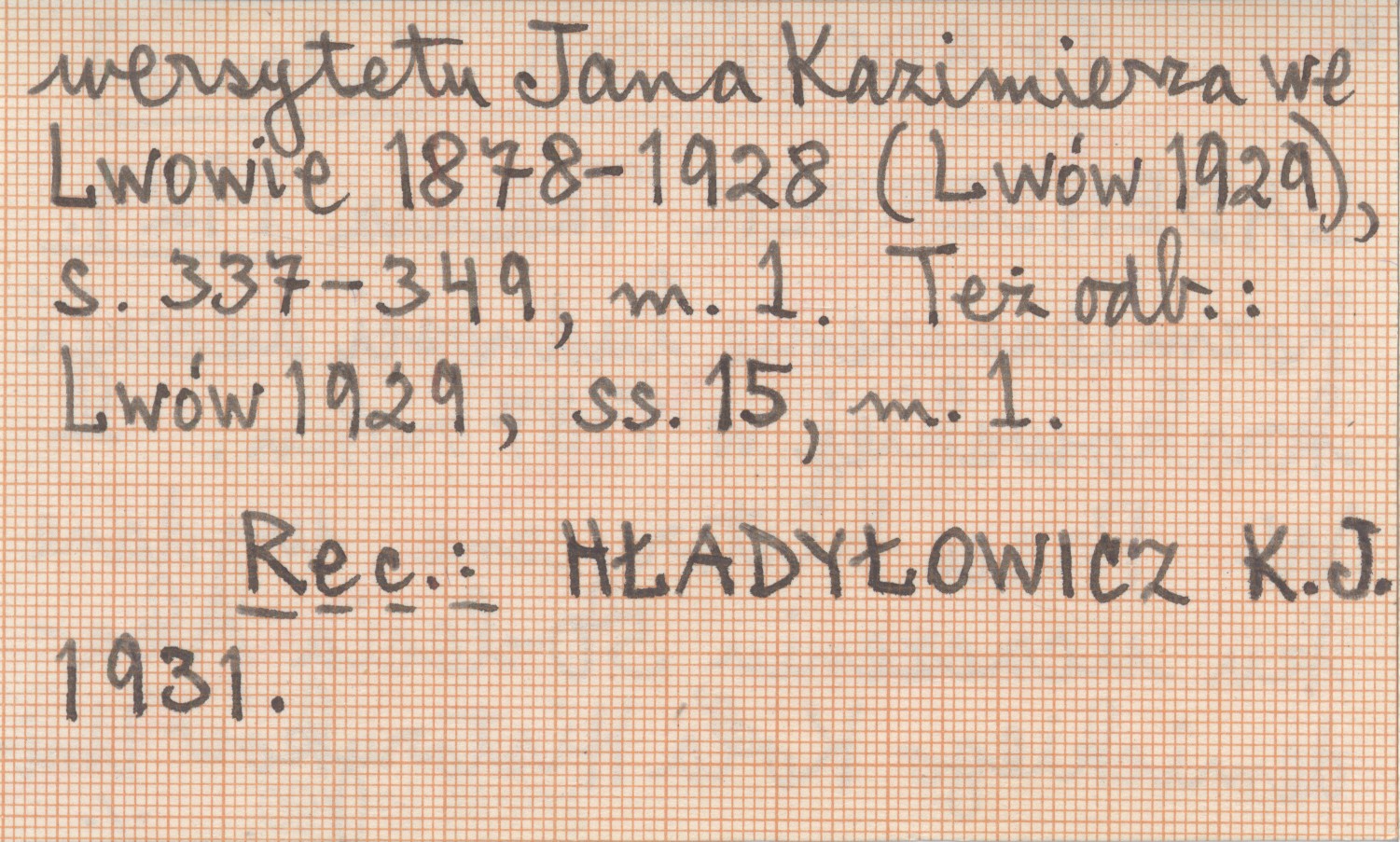 Prace historyczne, wydane ku uczczeniu 50-lecia Akademickiego Koła Historyków Uniwersytetu Jana Kazimierza we Lwowie 1878-1928 (Lwów 1929). , S. 337-349, 1 m. Też odb.: Lwów 1929, 15 s., 1 m. REC: HŁADYŁOWICZ K. J. 1931