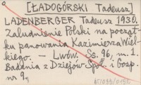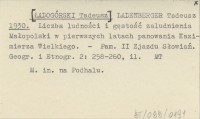 LADENBERGER Tadeusz [ŁADOGÓRSKI Tadeusz] 1930 Liczba ludności i gęstość zaludnienia Małopolski w pierwszych latach panowania Kazimierza Wielkiego.