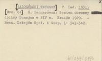 T. Lad. [ŁADOGÓRSKI Tadeusz] 1931 H. Langerówna: System obronny doliny Dunajca w XIV w. Kraków 1929.